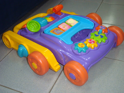 Bright and colourful Bruin push walker! Has telephone with sounds, beeping horn and music melody. Tray folds down to reveal a seat for your favourite doll or teddy. Converts from a walker to a play-board. A brilliant and encouraging walker with the perfect height for toddlers learning to walk.
